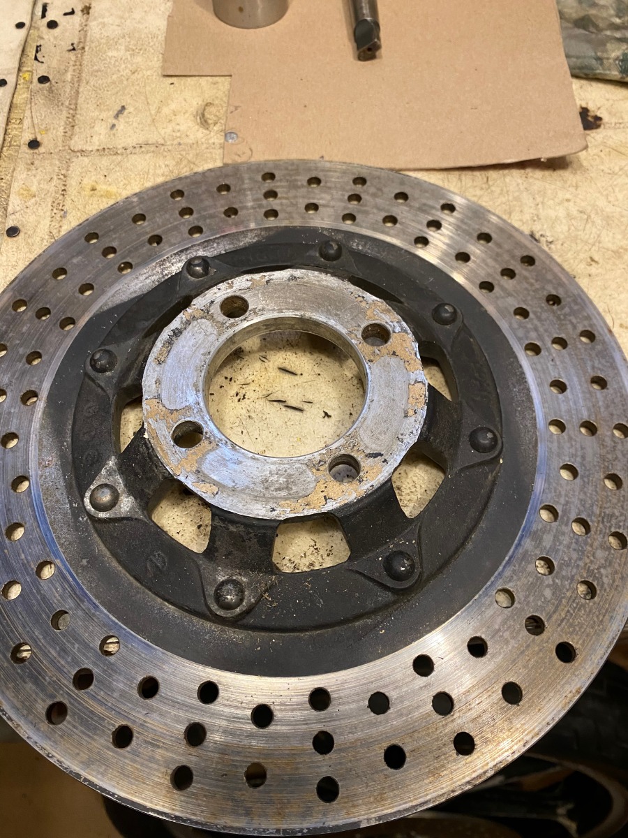 Most of the effort has been cleaning the surfaces where the rotors mate to the wheels, as I'd like these rotors to spin as true as possible.