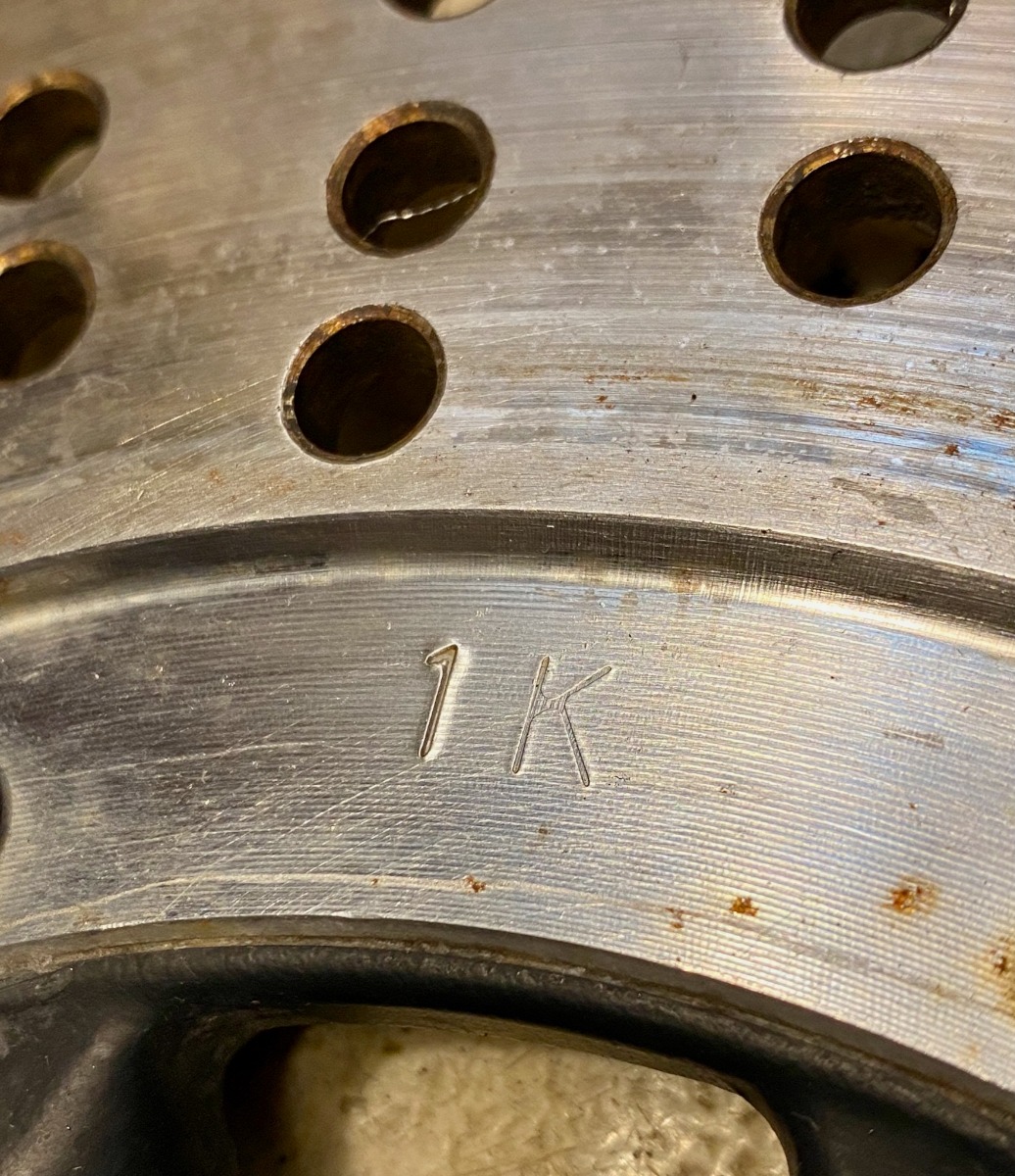 Including the rear wheel, which doesn't seem to have any of the gold paint and has a rotor with code 1K, whatever that date format translates to?