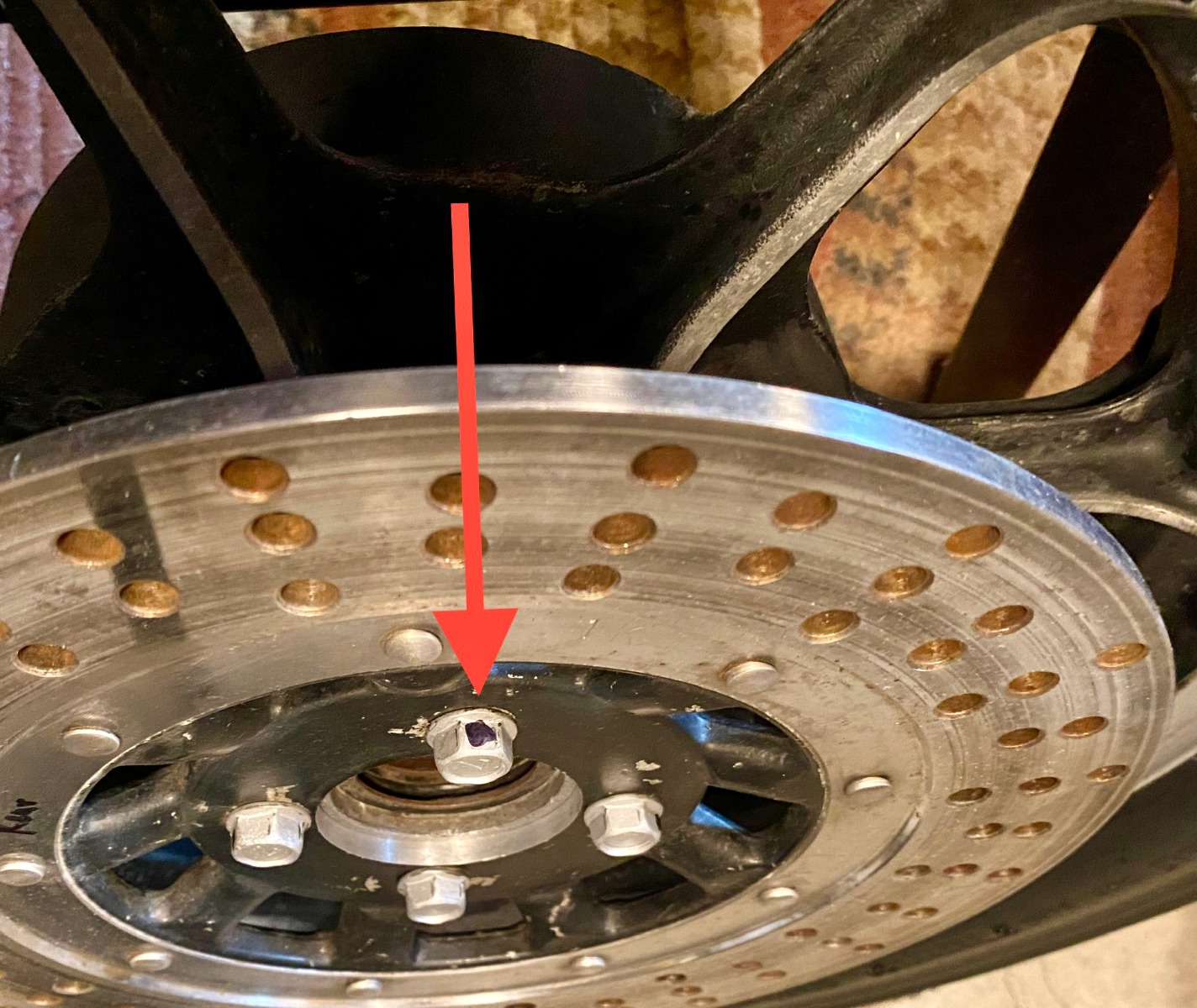So on each rotor bolt head I put a black dot facing radially outward. I can glance at the black dot's position and make a quick judgement about loosening.