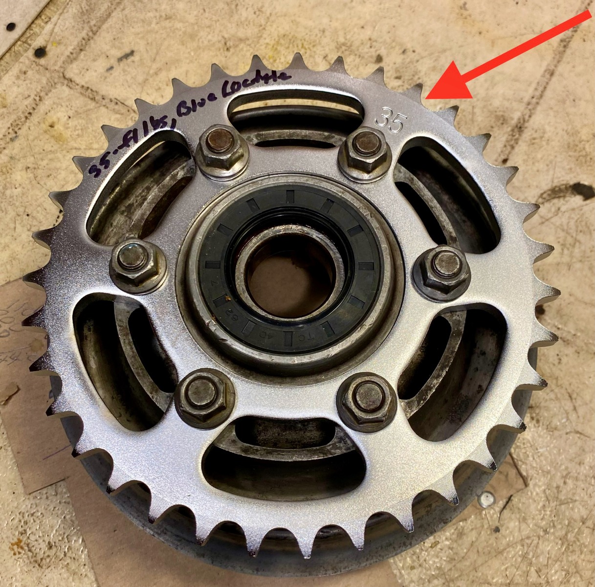 Torqued the sprocket nuts to 35 ft-lbs or three more than spec, and added some blue Loctite.