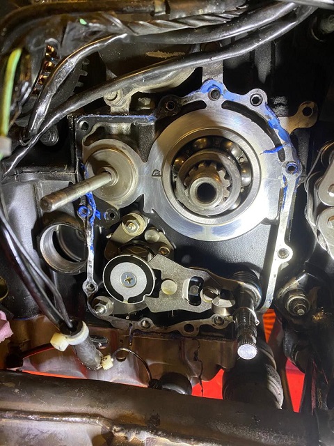 Yesterday it went back together with new gasket, oil seals, o-rings, fasteners, sorry for the shitty photo. This is not a restoration therefore Dag hasn’t repainted the covers.