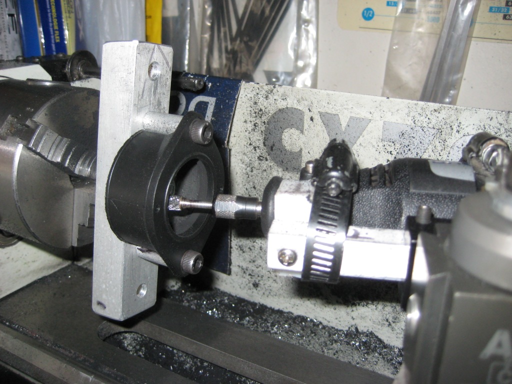 I am going to clear the bucket holes for the bigger cam pathways myself. The GPZ1100 rubber manifolds were port matched by him but I found the fit on the carb spigots to be very tight so I will open them up a bit on my lathe. I made a fixture to hold a Dremel tool to do this modification (shown here on manifolds for my 40 Lectrons)