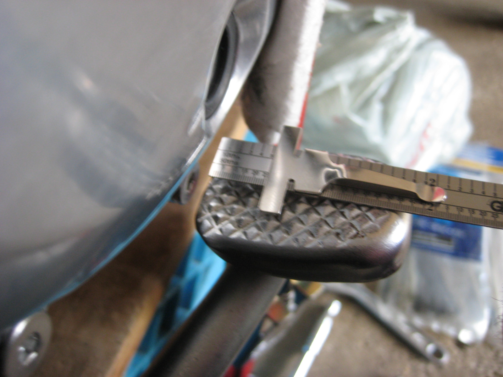 I also looked at spacing the rear brake pedal out 1/2". I took some measurements but need to modify the actuator spindle and make some new spacers.