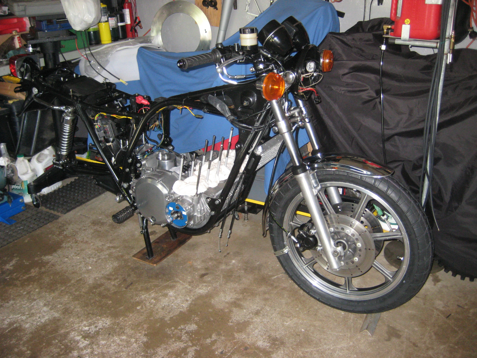 Hoping to get the rear wheel installed tomorrow along with the rear brake, that way I can wheel it around in the garage.