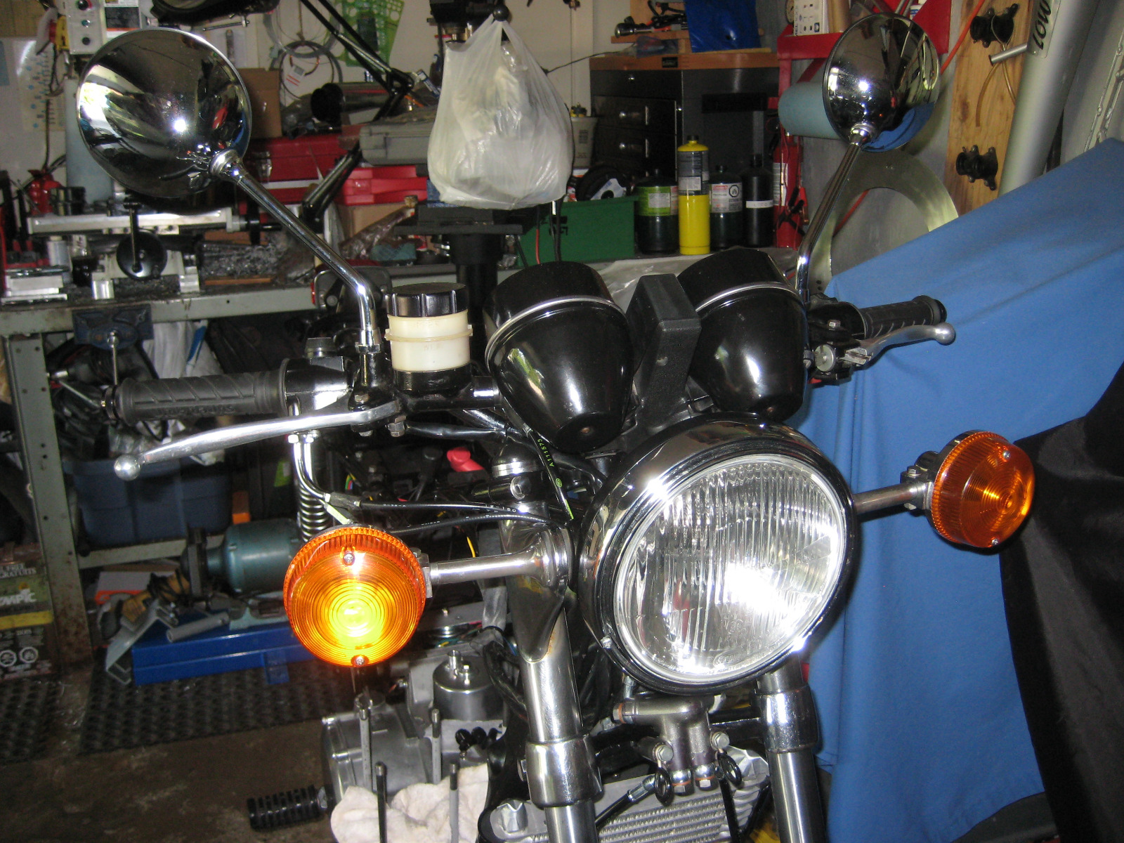 Also mounted the headlamp after hooking up a battery and seeing that everything was plugged in correctly (using Z1 indicators) Wiring does not match 650 harness in there.