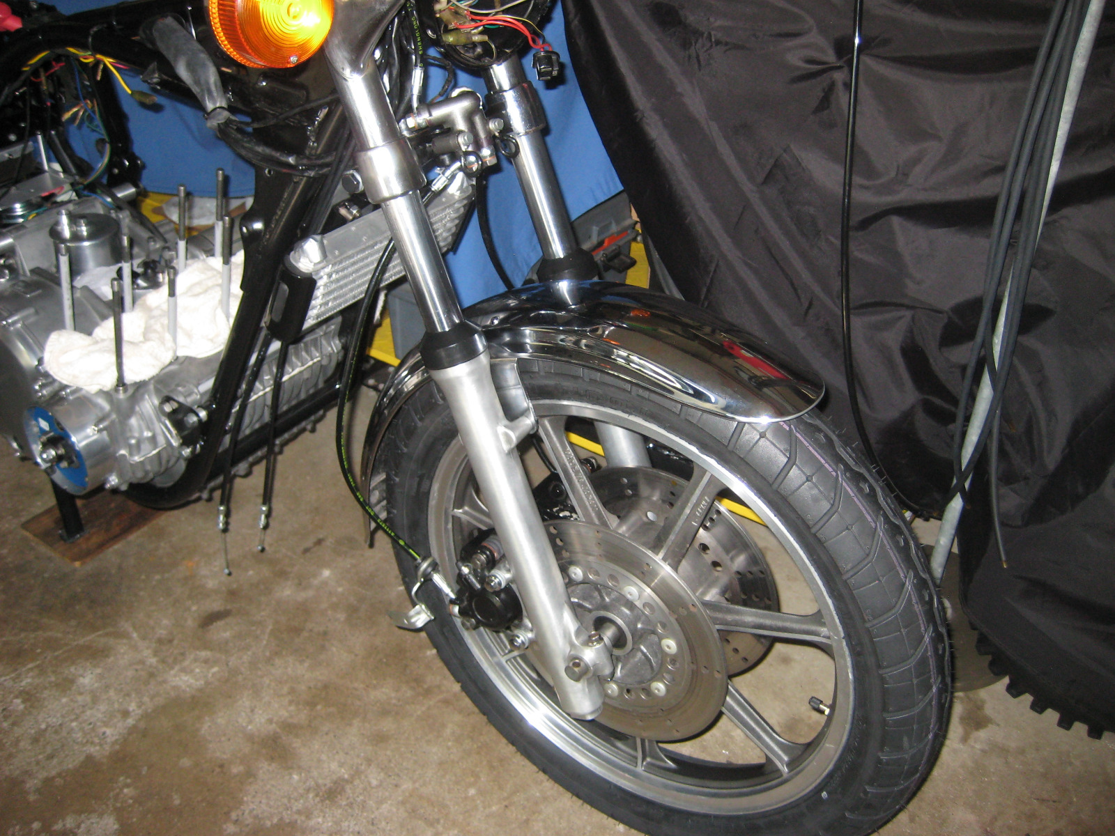 The rims/wheels on the project are 81 GPZ550 (forks,swing arm,rims,brakes) I believe the PO had it set up for road racing because most of the bolt heads were drilled for safety wire.
