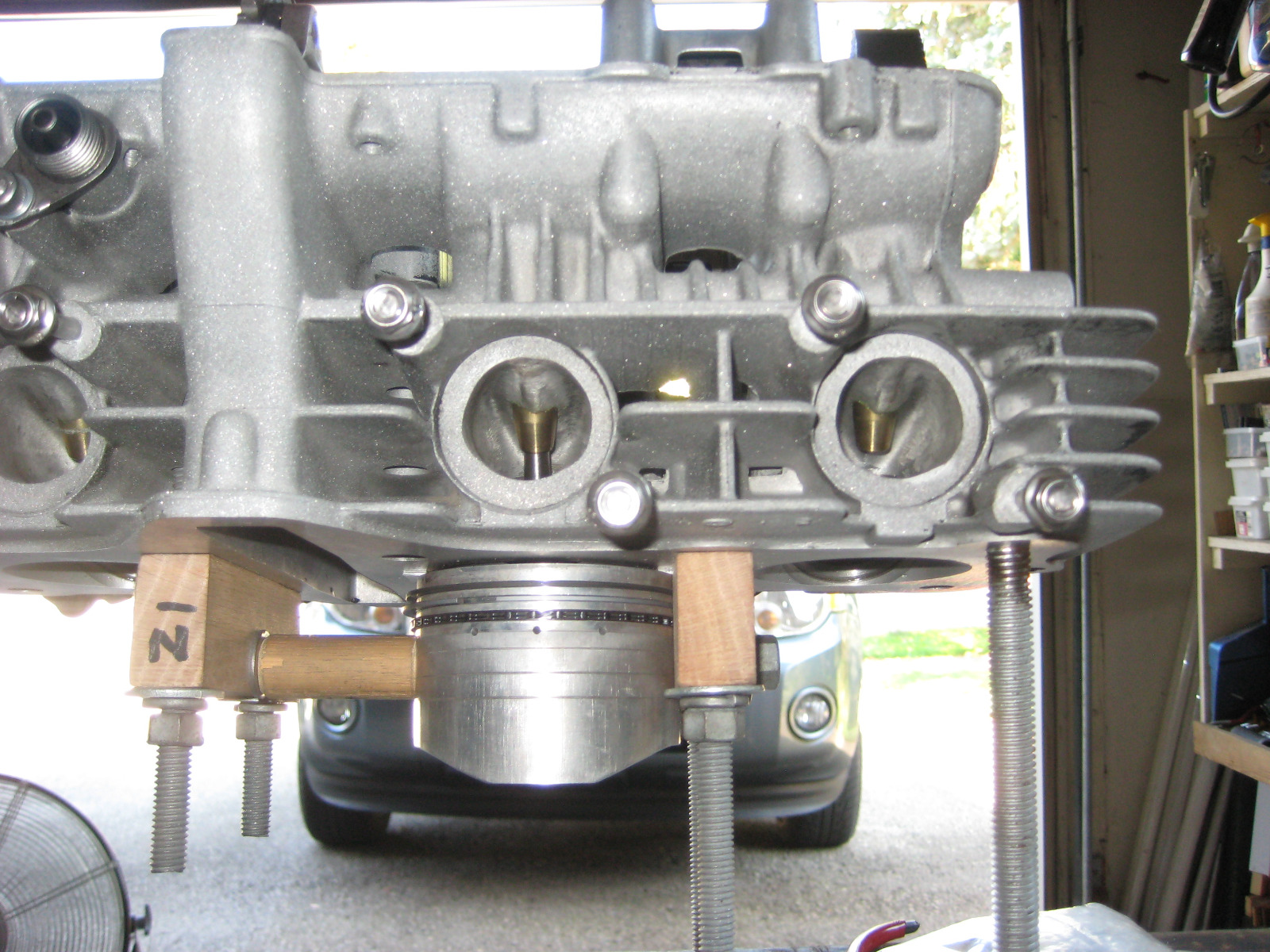 I got a chance to bolt up the piston to the head with my fixturing parts. I did need some thin shims on both sides of the piston but when I bolted it down it was rock solid.