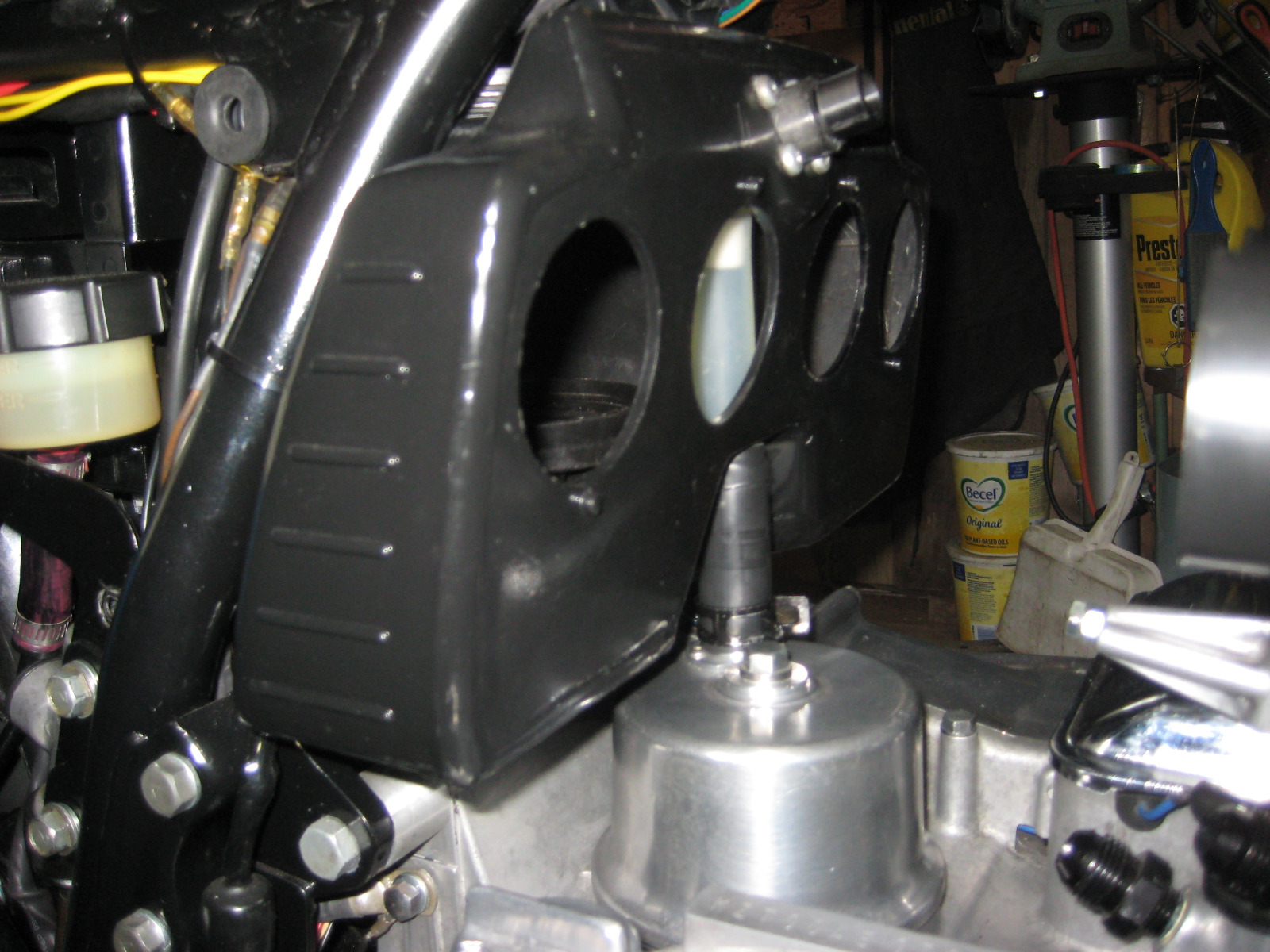 I measured then carbs and found out the main vent tube out of the air box was not going to make it up and over the carb tops. The catch can is strapped to the frame back bone so a straight shot would be perfect but the only way to do that would be some custom 90 degree elbows at the air box end.