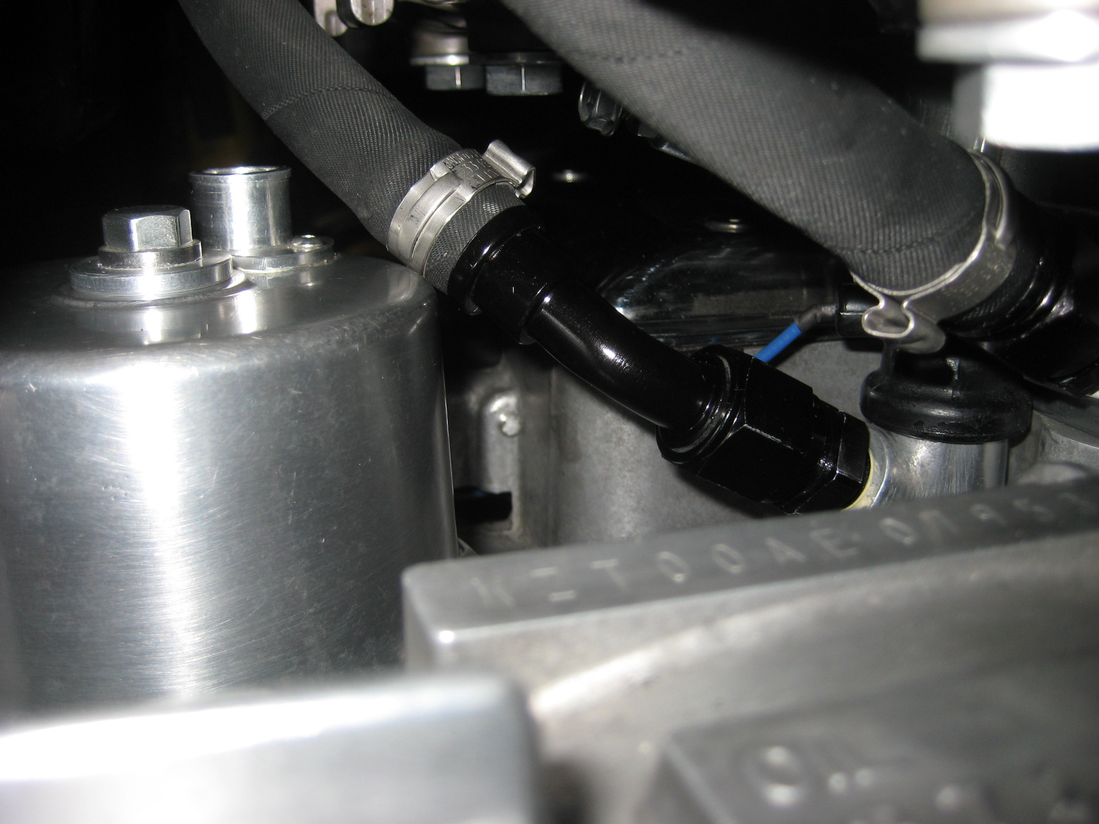 I started looking at the venting again since my 90 degree AN fitting arrived for the catch can.