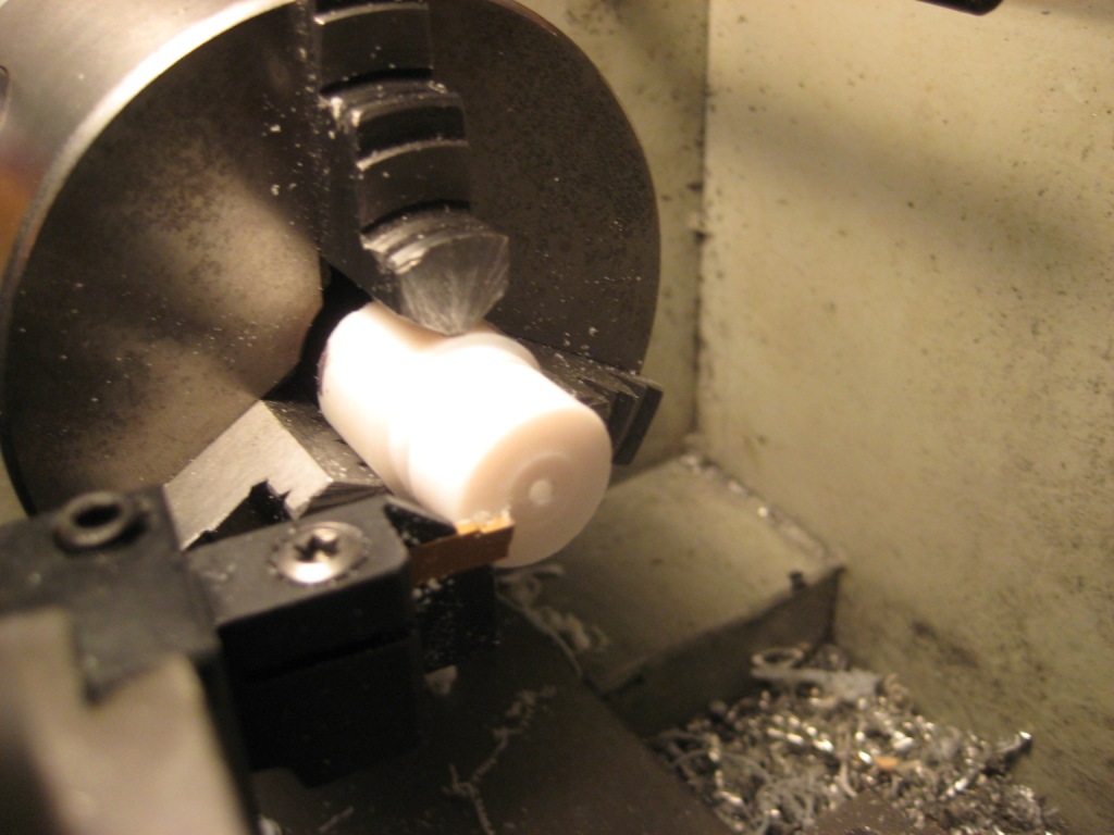 Got to finishing the last 4 of the Teflon buttons today. This was a bit of a chore on my tiny lathe as the compound rest locks are under the tool post cross slide. Every time I have to do a angle cut its a whole procedure.