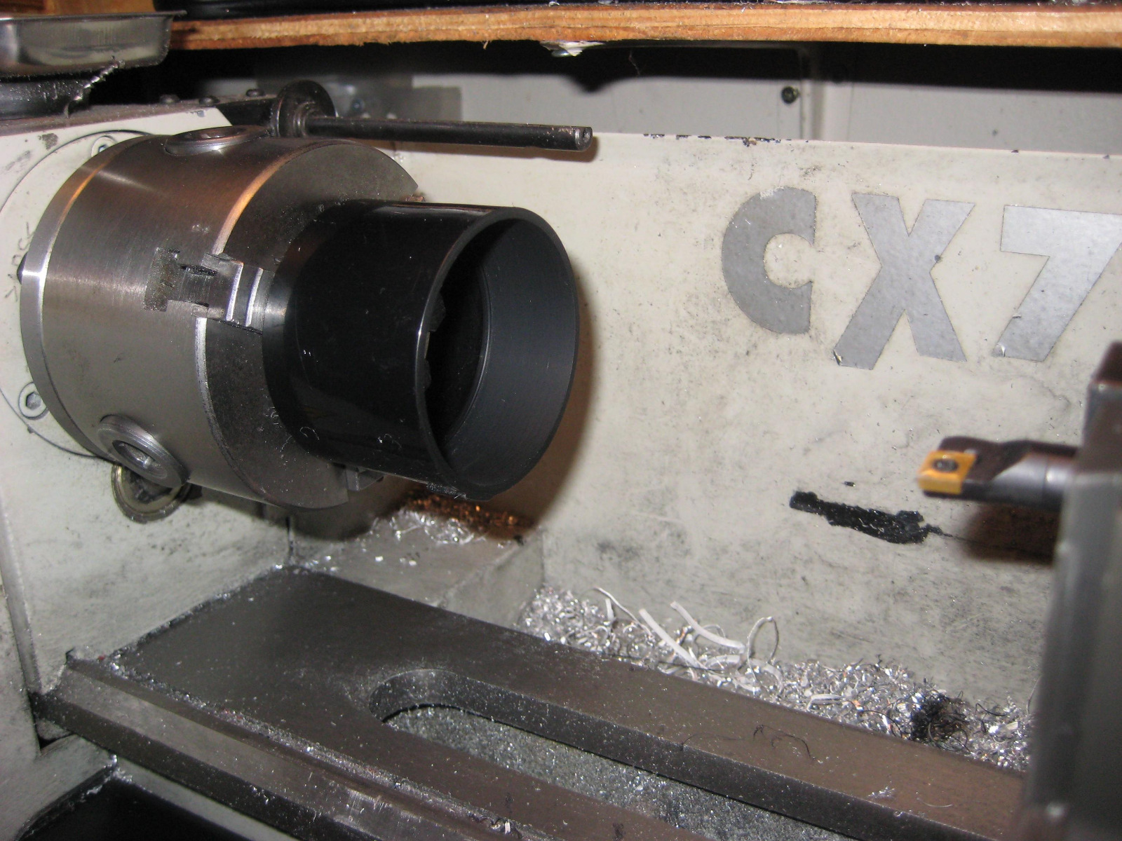 That ABS plumbing pipe cuts like butter, hard to chuck once it gets thin but the boring went quickly.