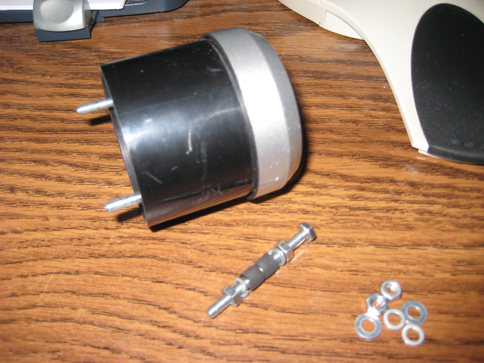 I ground some rubber sheet into round pucks to act like shock absorbers once installed over the mount studs.