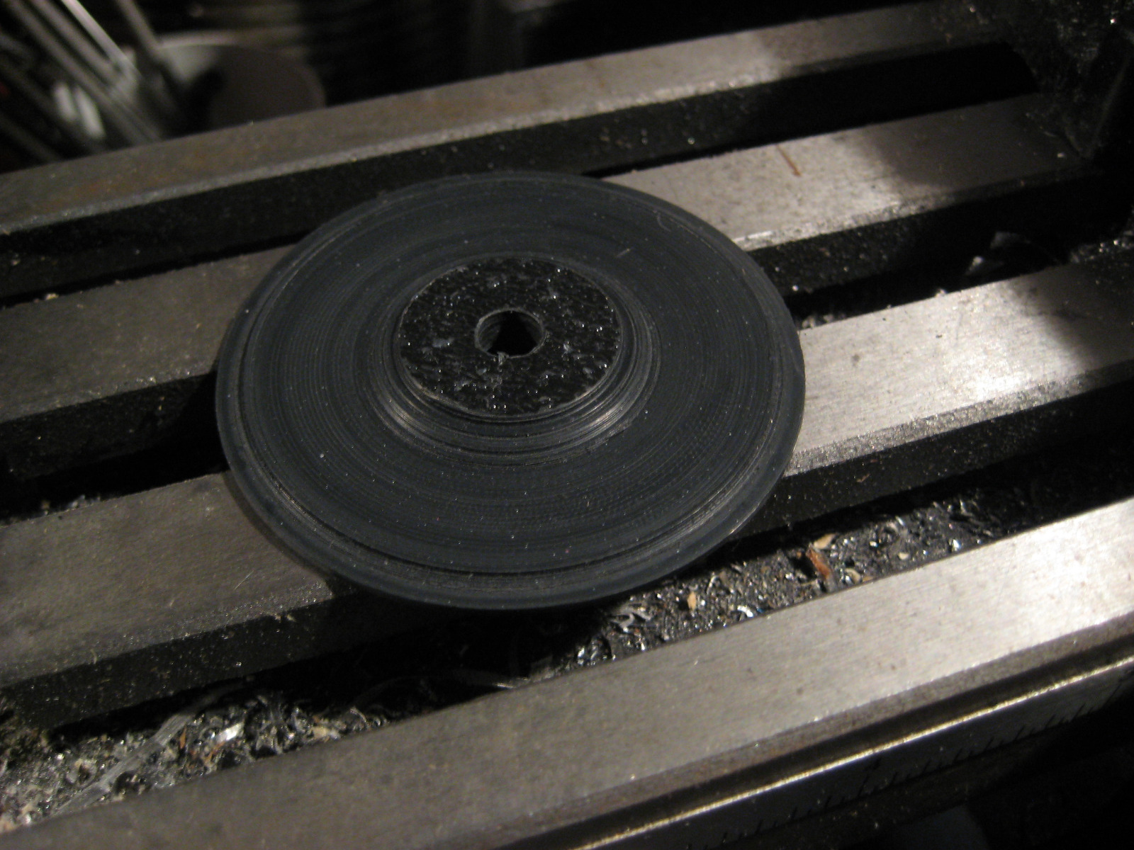1/4" ABS "crinkle" sheet stock thinned down to .10" thick. This scrap piece was a little small so the OD is slightly smaller than the cover, but it does center on the ID.