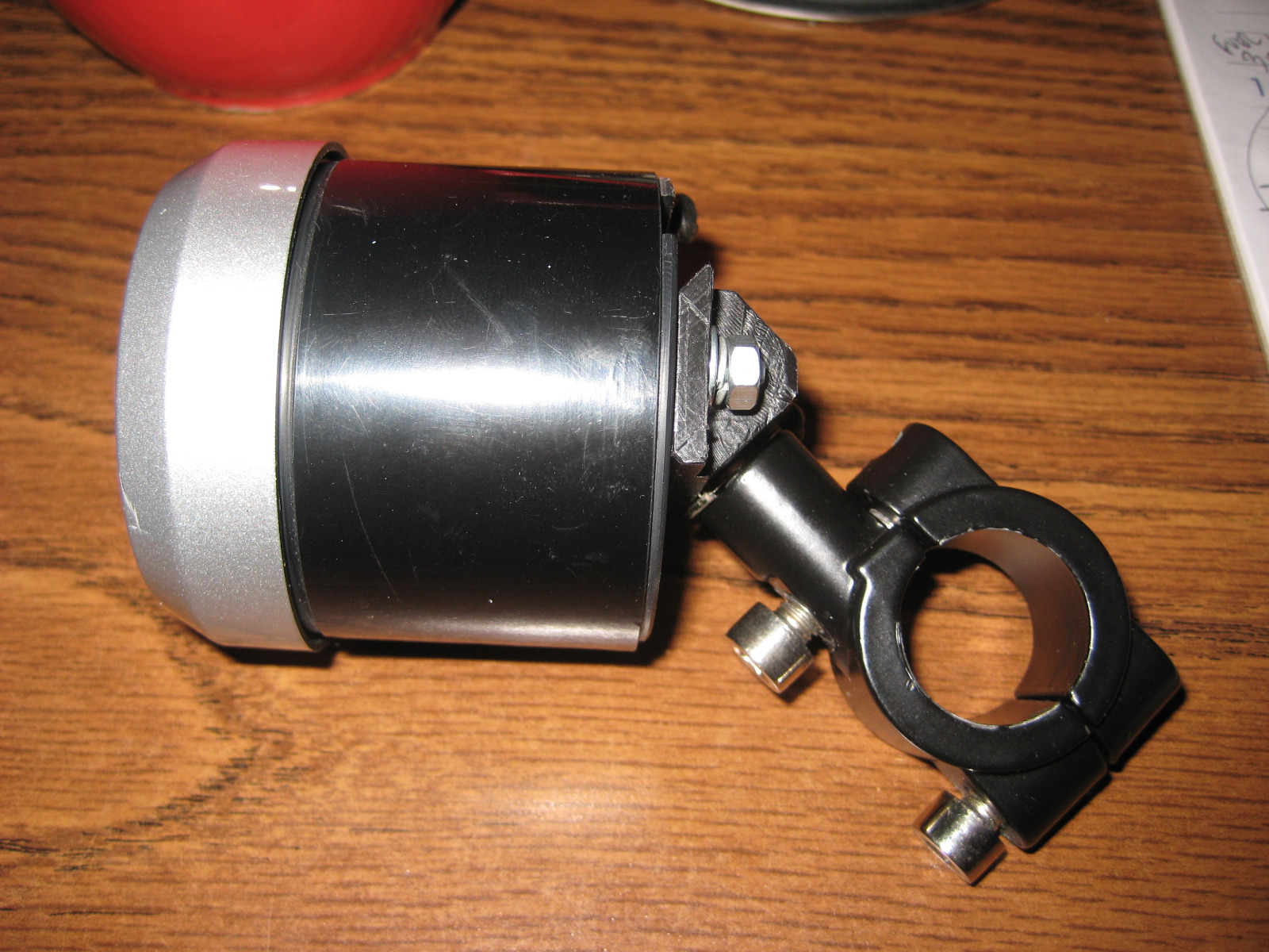 I have the gauge part of this about 98% complete. I got that bolt sorted and clamped it onto a handle bar to see how it looks.