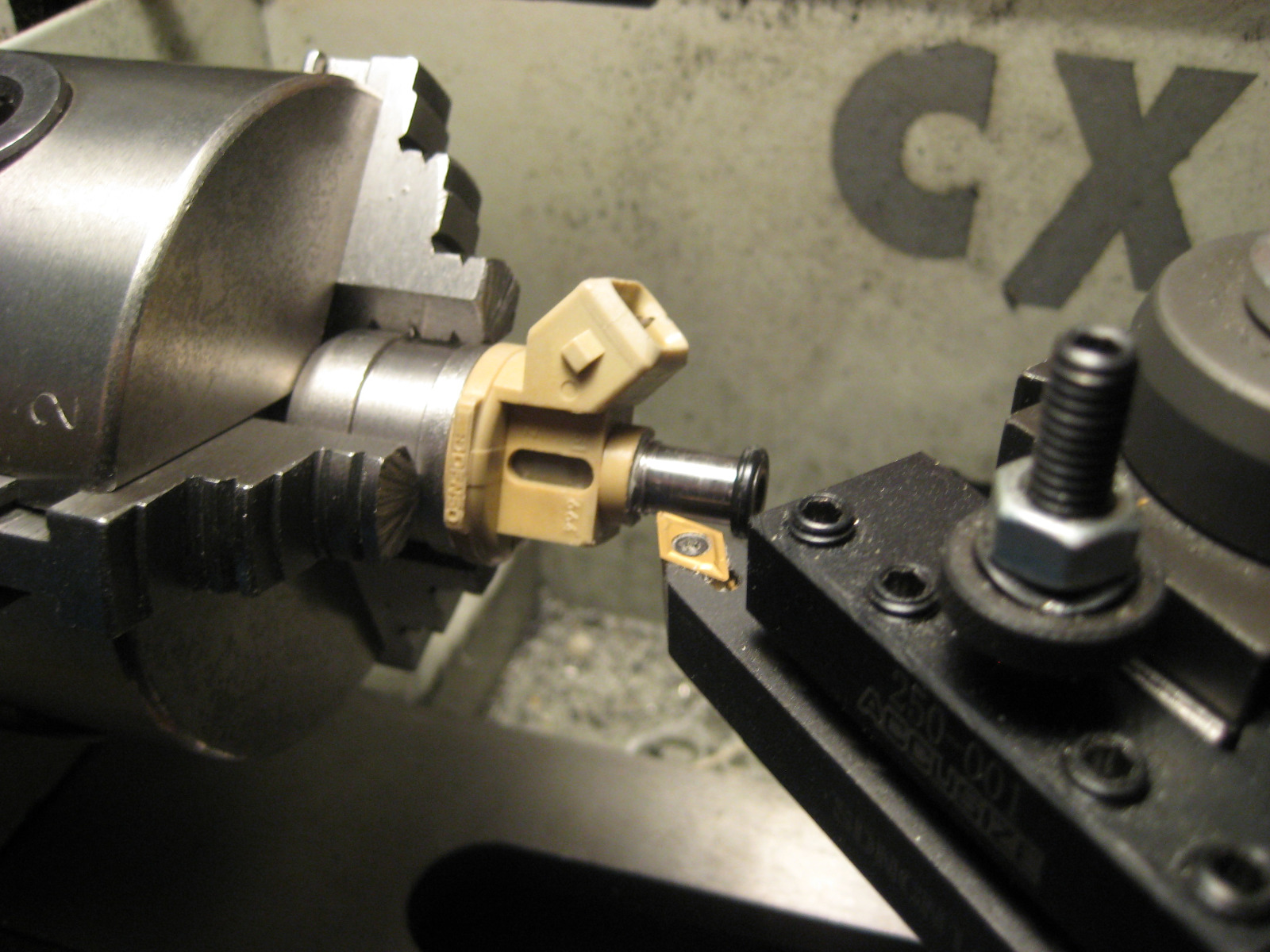 I was out doing some work on my lathe so decided I would modify the Ford injectors to take a 5/16" fuel injection hose.