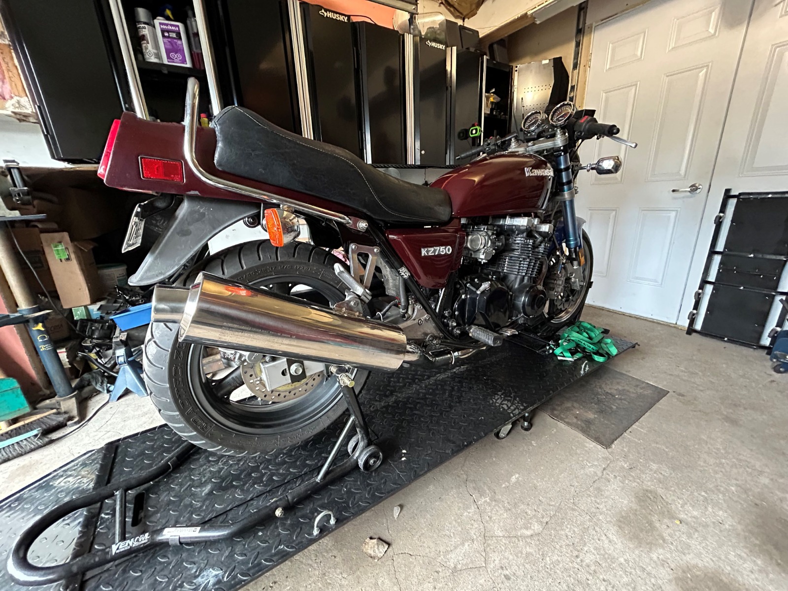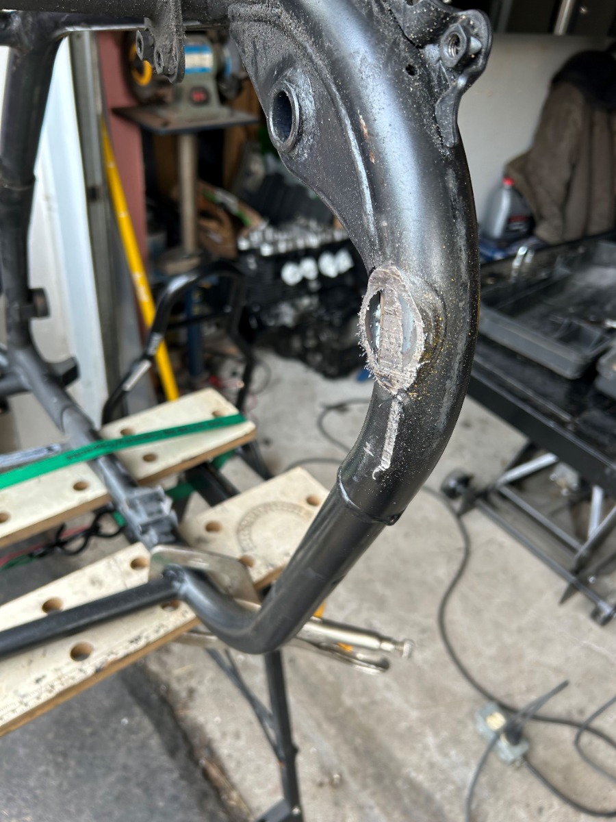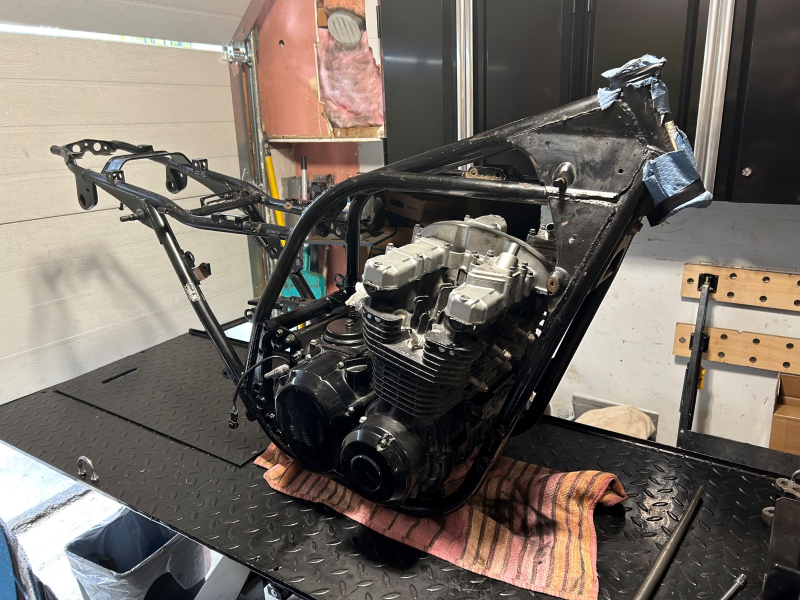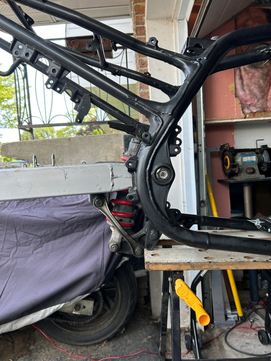 Now that the engine and the rear suspension are fitted togetherwith the frame, I wanted to see what the ZR7 exhaust will look like on the bike.