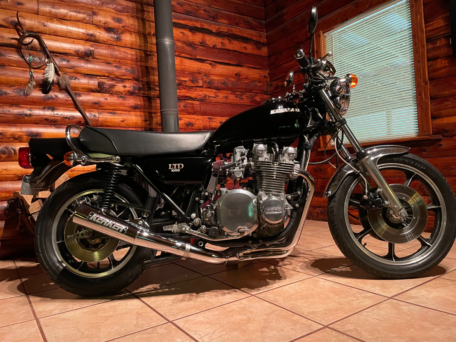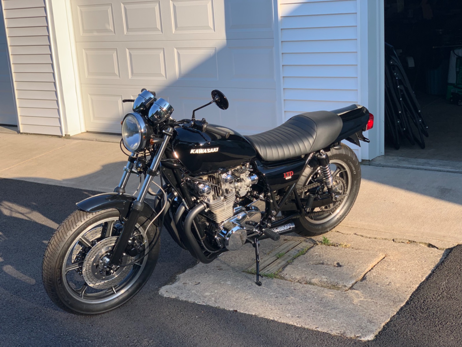 Last year we pulled the motor from the 77' KZ 1000 LTD to paint the frame, it was just too crusty. We replaced wheel bearings, seals and rebuilt all the hydraulics. I'm still running the original paint on the bodywork. I also moved the front turn signals to the headlight mount. It has 34k miles on it and runs great. I also installed Mikuni RS34 carbs and a Delkevic exhaust system because the original Kerker header had given it's all.