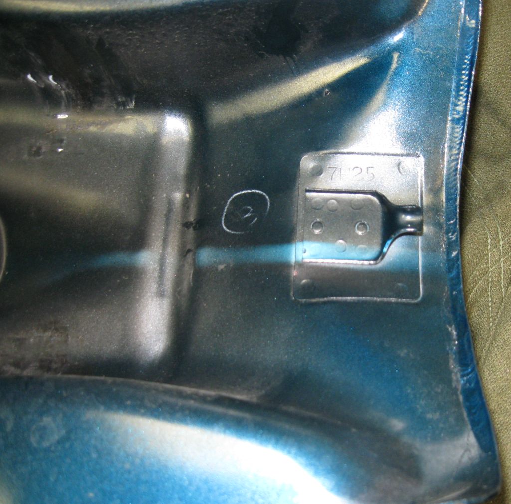Are there any characters (date code) stamped on the bottom of the rear hold-down tab? There's some limited documentation of those codes available.