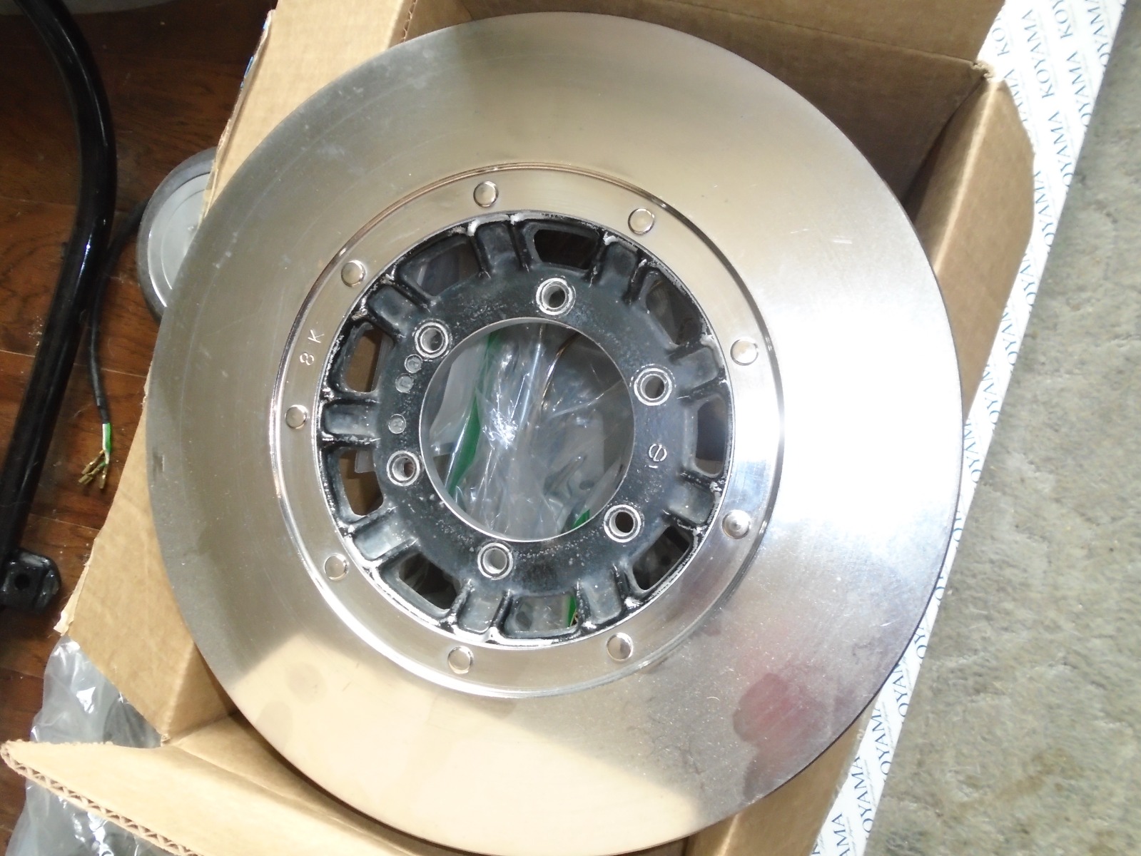One thing I would say is if you are planning to use it I would advise "stripping" the surface that sits against the wheel. That coating looks real thick and will cause the disc to run out of "true" which can cause pad "knock back" (nothing spoils your day like grabbing a handful of brake and nothing happens)
