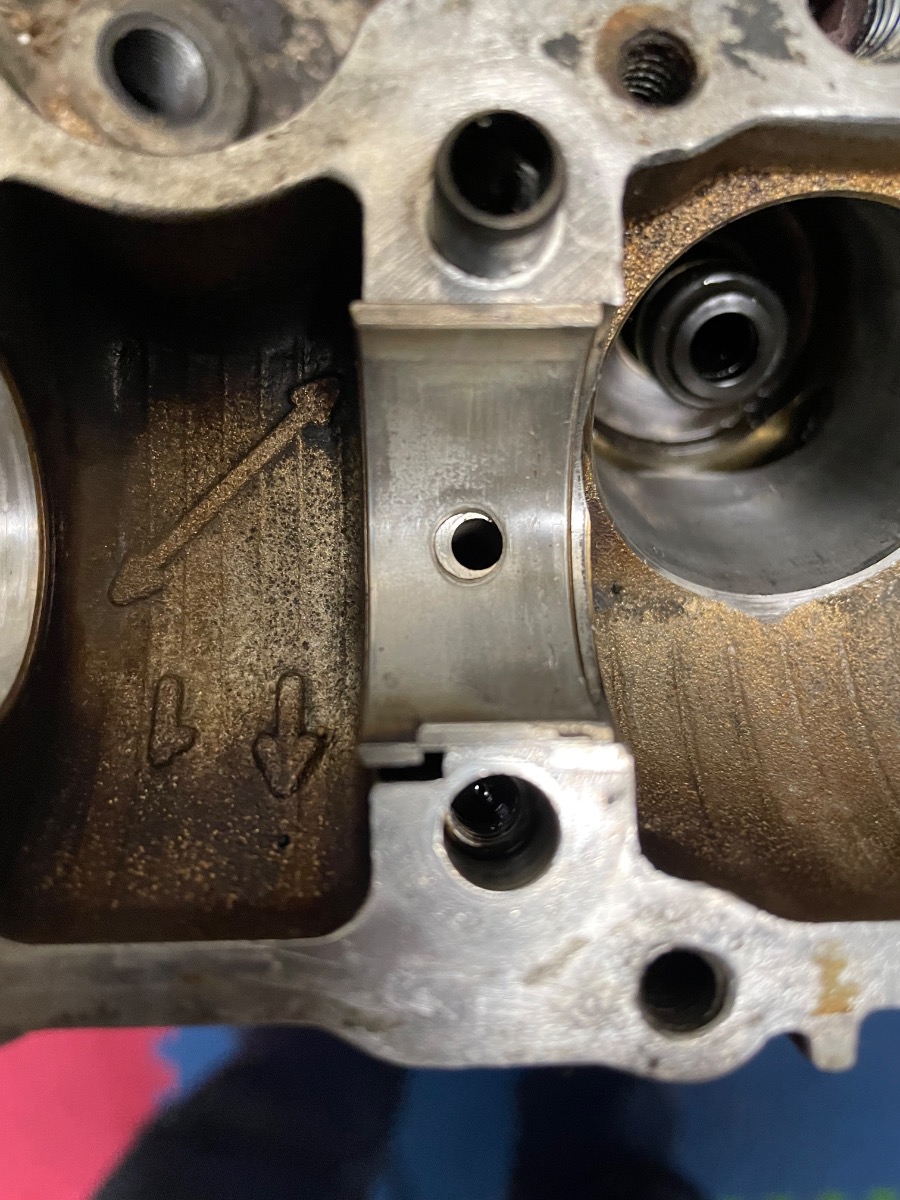 First, when the head goes back together, should I install the cam bearing below in the correct position and forget about how I found it?