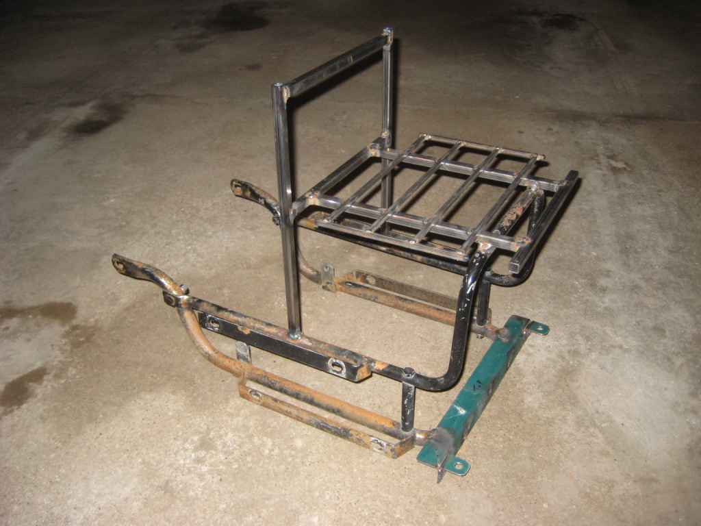 I got the bag frame mocked up on the bike and welded up a luggage rack using that frame as a base.