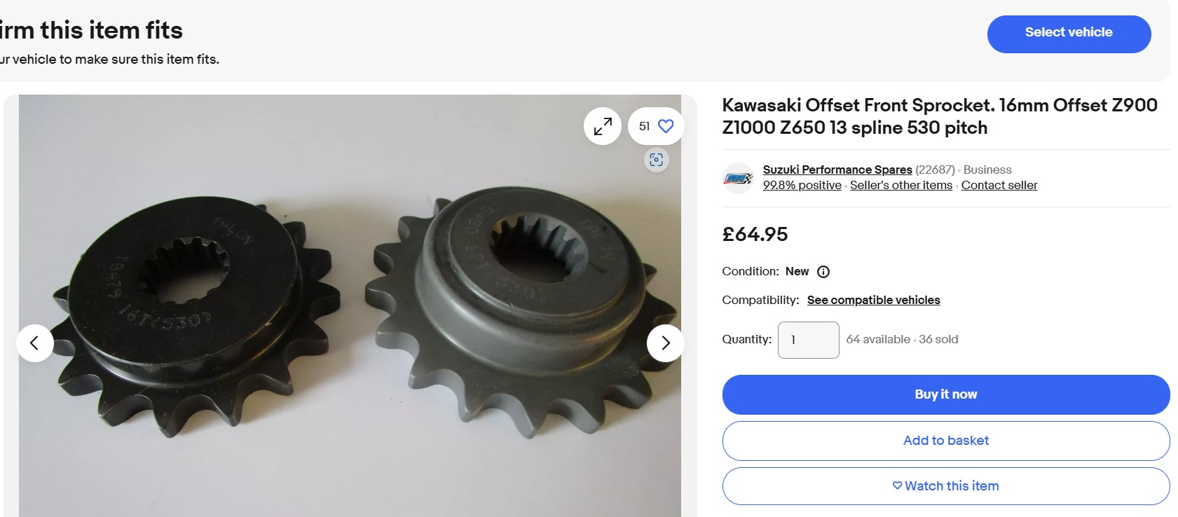 sprocket info. Ordered up an 18 tooth, 5/8" offset c/s sprocket. Thanks for the info. Wookie: I looked at that link you had in another post for Gearing Commander. What a cool site. Loads of info. Great help and very interesting. Zed: My brother-in-law knows a guy who can turn my sprocket carrier, so I can get that done for cheap (I like cheap). I'll figure the total I need to take off when I get the sprocket. Thanks again.