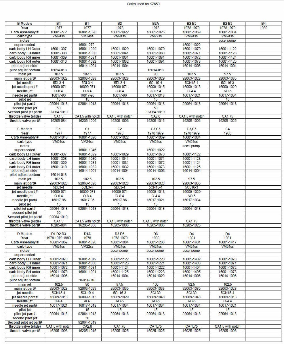 Thanks for the replies, I think I am getting closer to finding what year and model 650 I have. The fuel tank has the smaller letters in the "kawasaki" I still can't find out about the accelerator pump on one of the carbs. It only appears on very few models I have looked at. It wasn't an optional extra was it