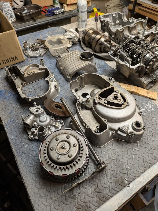 BUT, he had 1/2 a Samurai I could have if I un-seized and repaired an engine for his '64 Honda Benly 150. (pictured under my Samurai engine.
