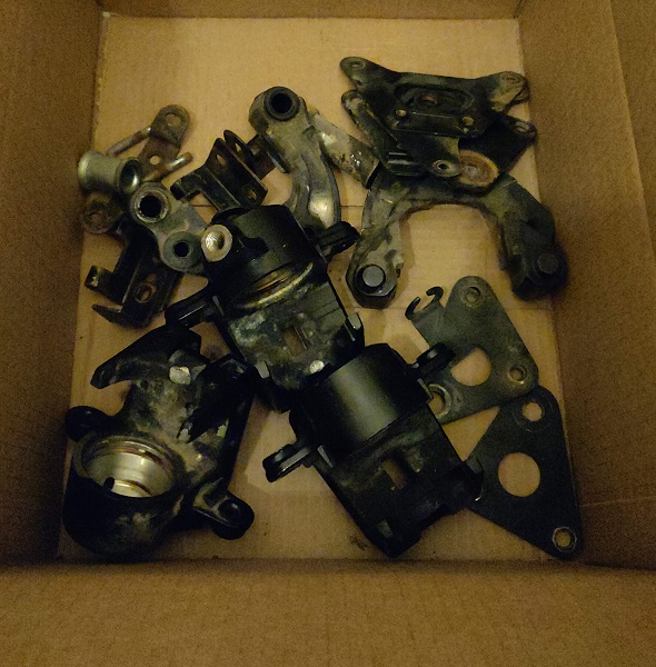 I've switched to VHT caliper paint in colors aluminum and black as this stuff has solvent resistance and is meant to be baked..so it should be even better than the HF chassis paint. Onwards with the strip and refurb process, I guess!