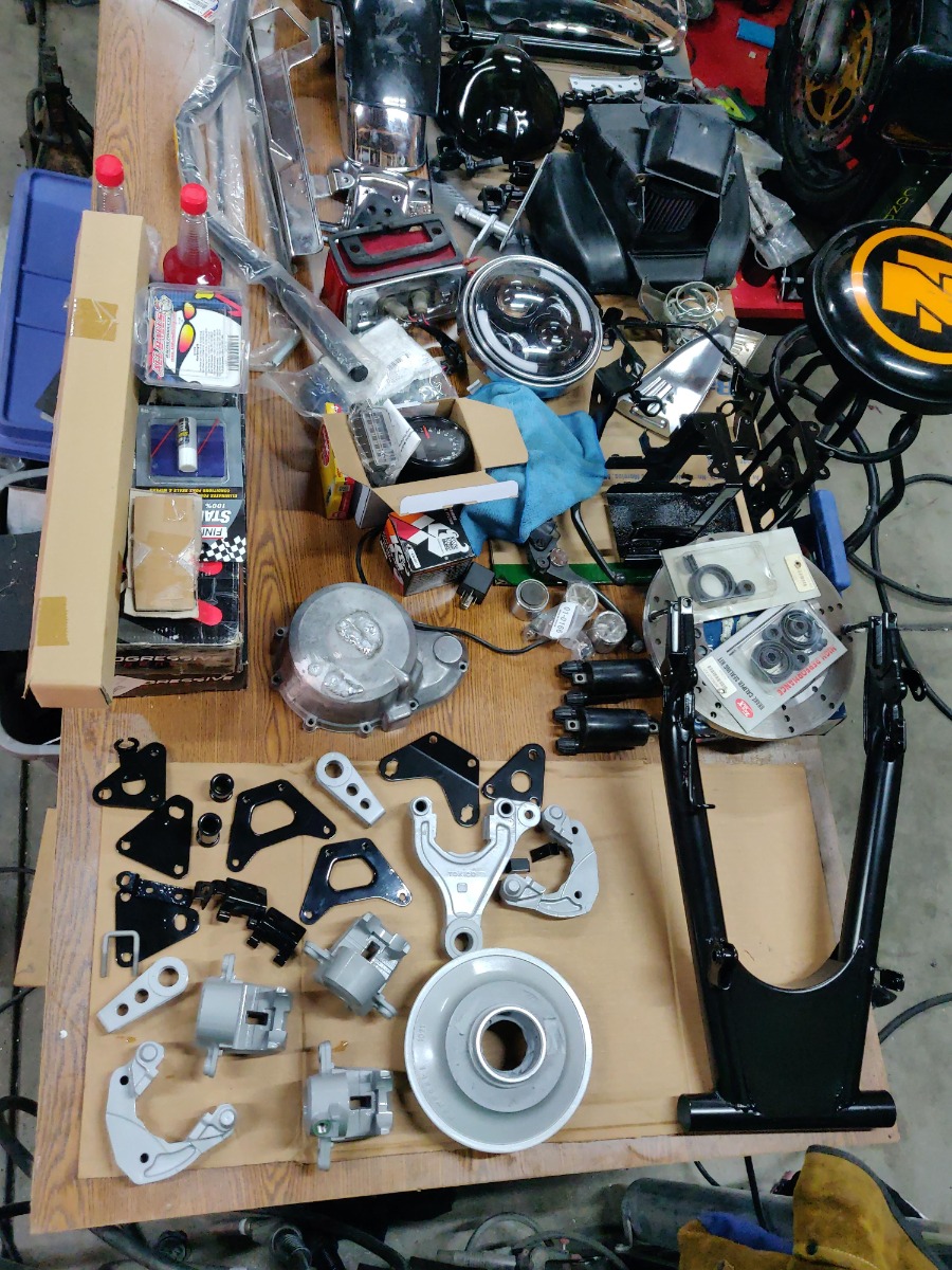 New tires (shinko 999 - long life apparently?). Also 530 chain conversion parts and new handle bars (cant handle the stock ones )