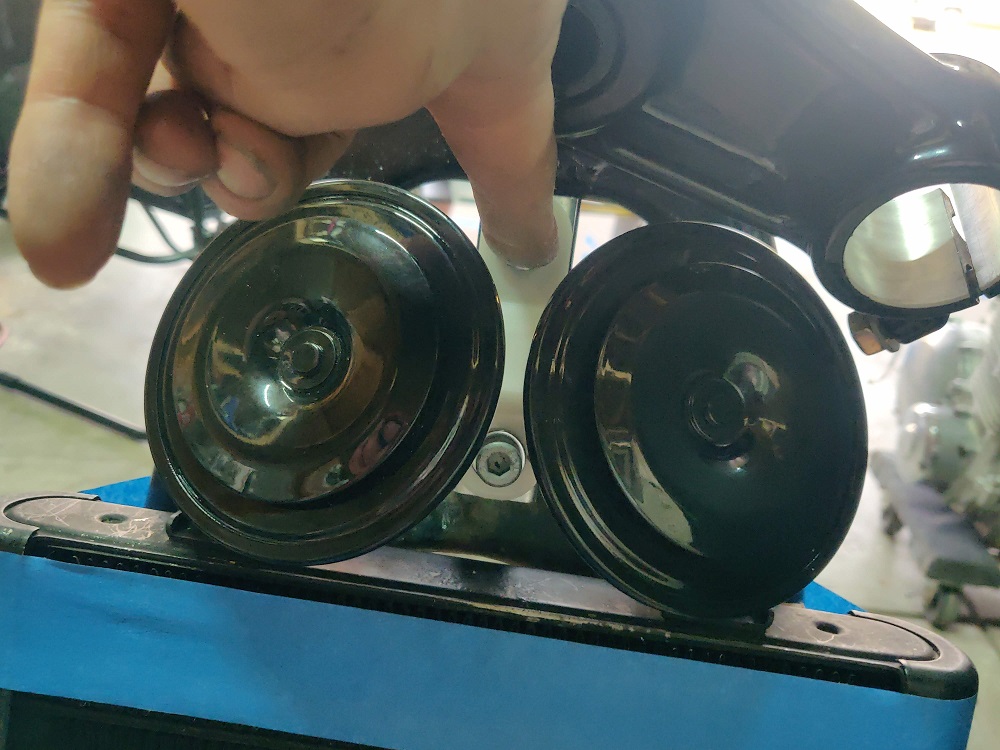 Mounting the dual horns and oil cooler (1983 gpz1100). Final bracket will be printed in MJF nylon