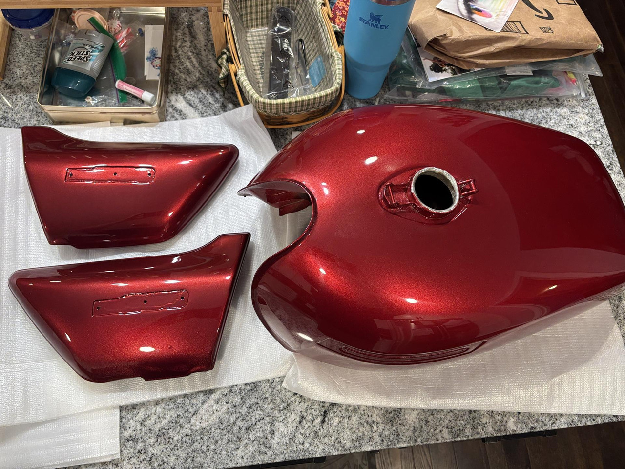 The bodywork is back in my possession. Now just to refinish the frame and other brackets, etc. and final assembly should be able to start.