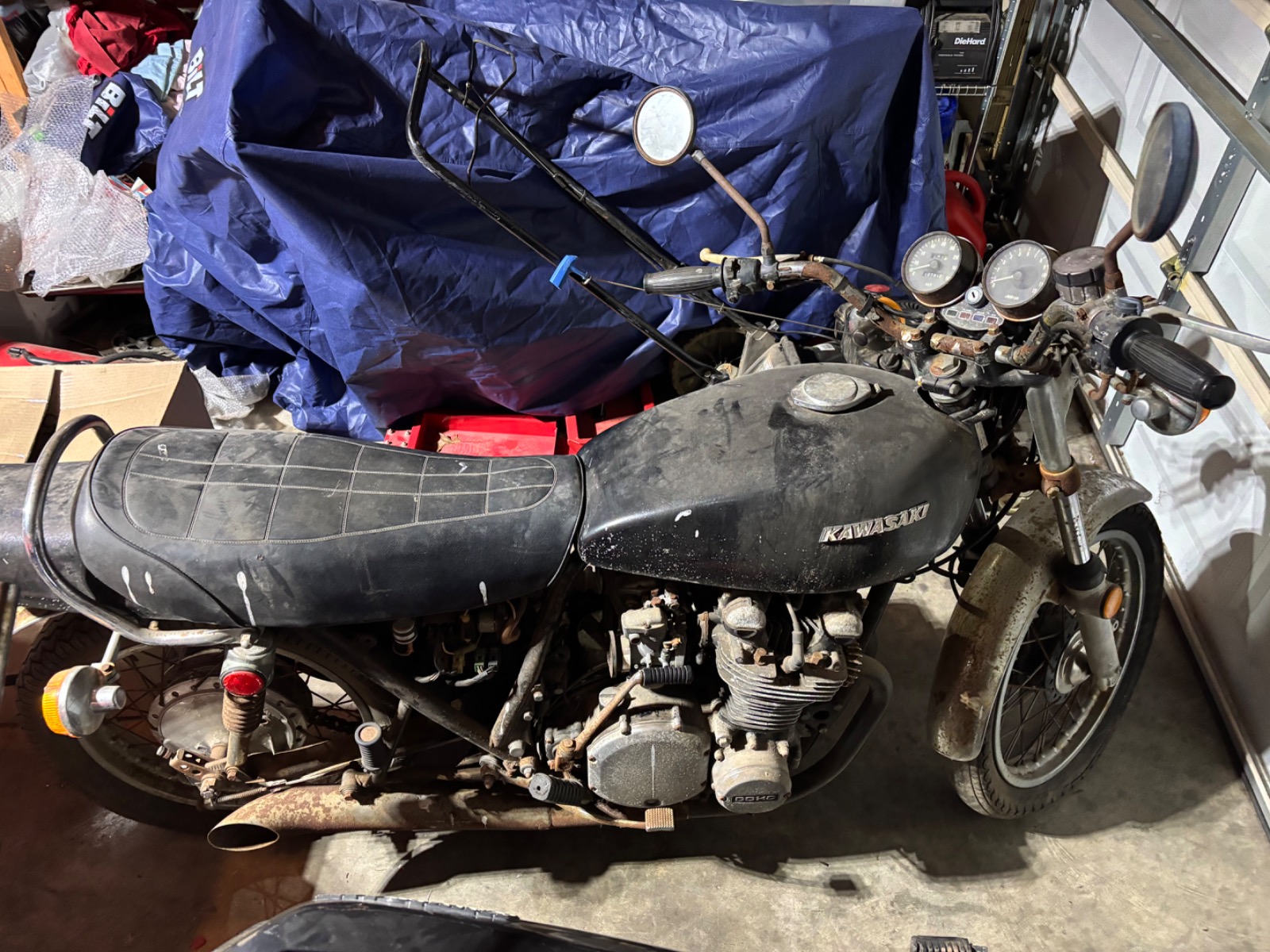 Hello everyone! In the spirit of buying another project instead of finishing what I’ve been working on, I’ve been very fortunate to pickup a rough 1973 Kawasaki Z1. It’s in pretty rough shape and the motor is locked up. Otherwise, it’s a matching frame/engine bike that looks mostly complete.