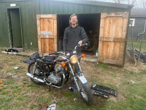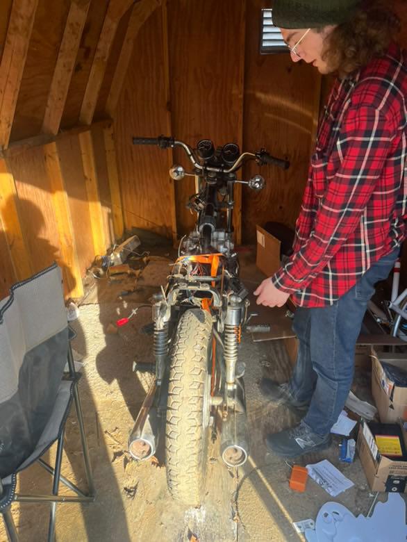 Next go is to put oil in the engine and work on getting spark, send the carbs through an ultrasonic cleaner, and try to get combustion with an aux tank while we're working on cleaning out the tank. But we've confirmed all the electrics work (I'm gonna go through and replace a lot of the terminals and resoldering rougher looking wires) which is neat! Oren religiously blips the horn anytime there's a dull moment which I find endearing.