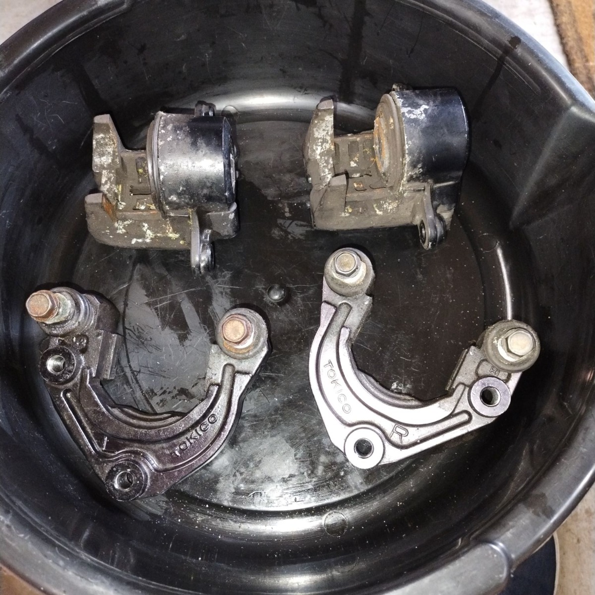 I have both the front and back brake systems off for cleaning and rebuilding.