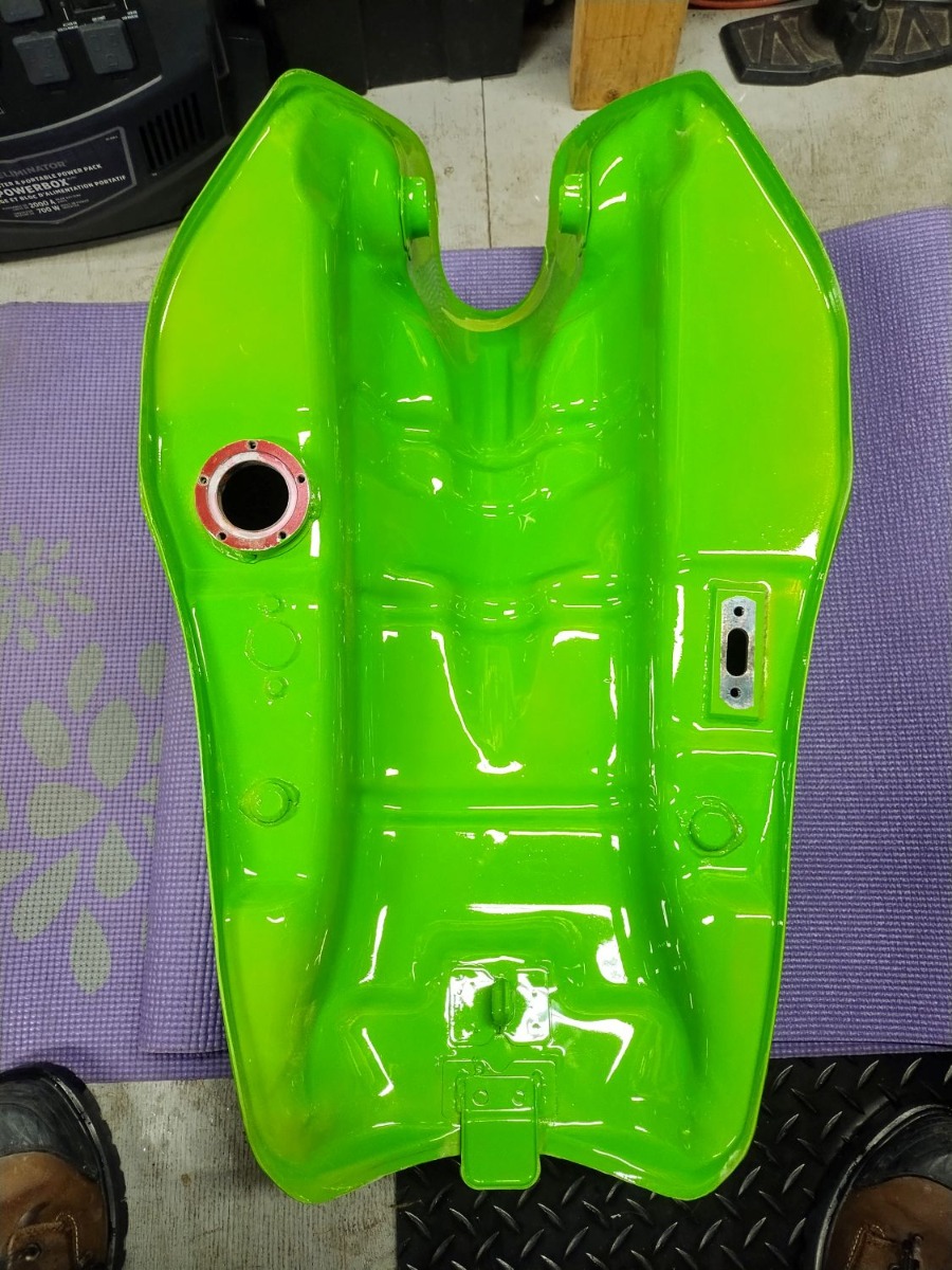 They, along with the GPz gas tank, will be getting painted green, and the stripes painted on.