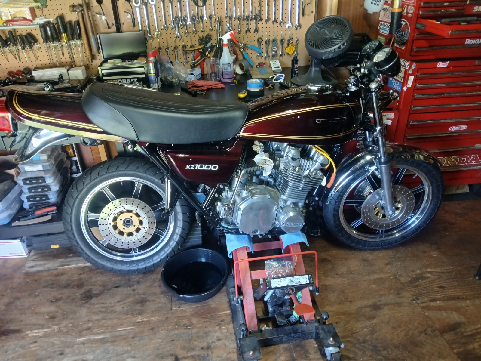 Here are some pics of the progress on the 77 1000a I found on this site a few months ago .I have reconditioned the lesters with paint and polish, wheel bearings, new sneakers, rebuilt the front forks,new calipers,brake lines. There's so much more but I'm not good at listing it all.