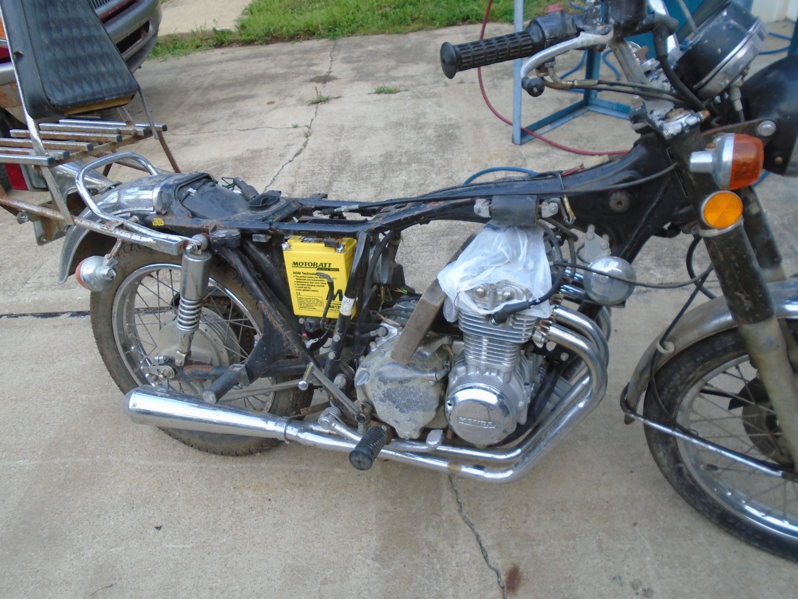 Like this example Ron, although a crusty CB350 example but Where do your eyes go to immediately!! To that "out of place color" battery. I do love me some motobatt batteries though. My similar thinking the same, immediate attention goes to those Taylor Type "agriculture looking" looking colors,