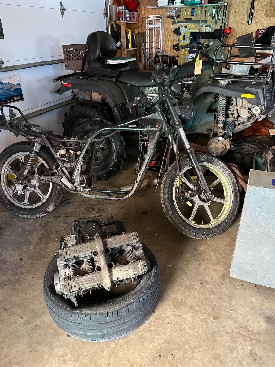 I did an inventory of the parts and the bike seemed to be 95% complete. I did some motor work last winter, carbs in the spring and finally in the fall of 2025 I got the bike running.
