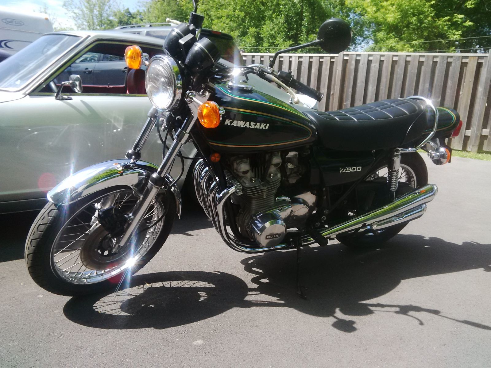 So I rode on over to Paris, Ontario this morning for the CVMG swap meet and the first Kawasaki I see in the parking lot was the one 2 posts above belongong to Drooz. Got to chat with him for a few minutes and then waited until the crowd of admirers around his awesome 750 thinned out and i could take a photo,