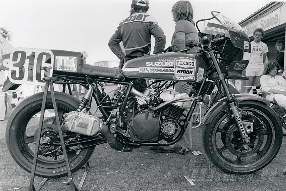 Wow, that swingarm looks nearly stock but how did he fit that wide tire on there??