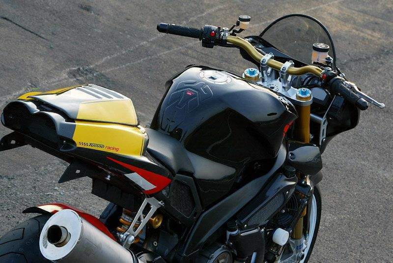 14 Aug 2013 10:27saw one of these in person yesterday 2003 aprillia tuono racing..carbon fiber everywhere...oz wheels..ohlins front and back and dampner...stock...so light so cool...stock carbon foiber and ohlins bike..low miles used 5-7000...my new want list...plus...i fit in the rearsets..narrow,125 hp v twin dripping in goodies stock