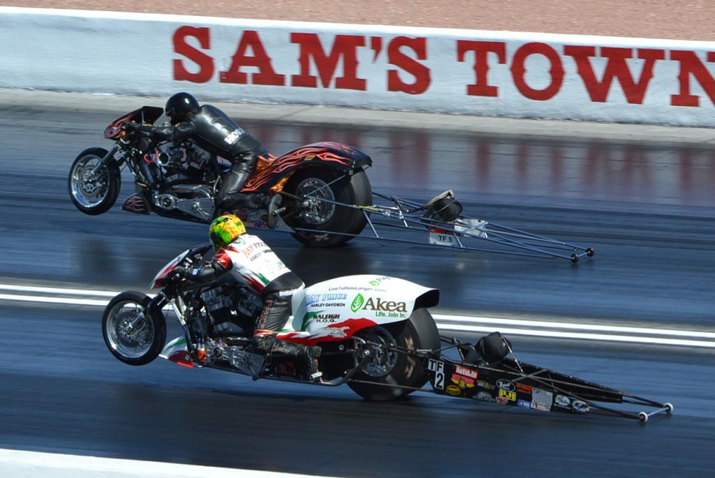 09 Apr 2012 23:10racer54 wrote: My mother and father both rode Indians and Harleys but I'm not a big fan...but...I love to watch those Harley fuelers. The sound and thunder they produce is incredible. You feel these bikes make a run along with watching them. Just listening to those motors makes you think you can hear every time the plug fires...awesome. Hell of a show.