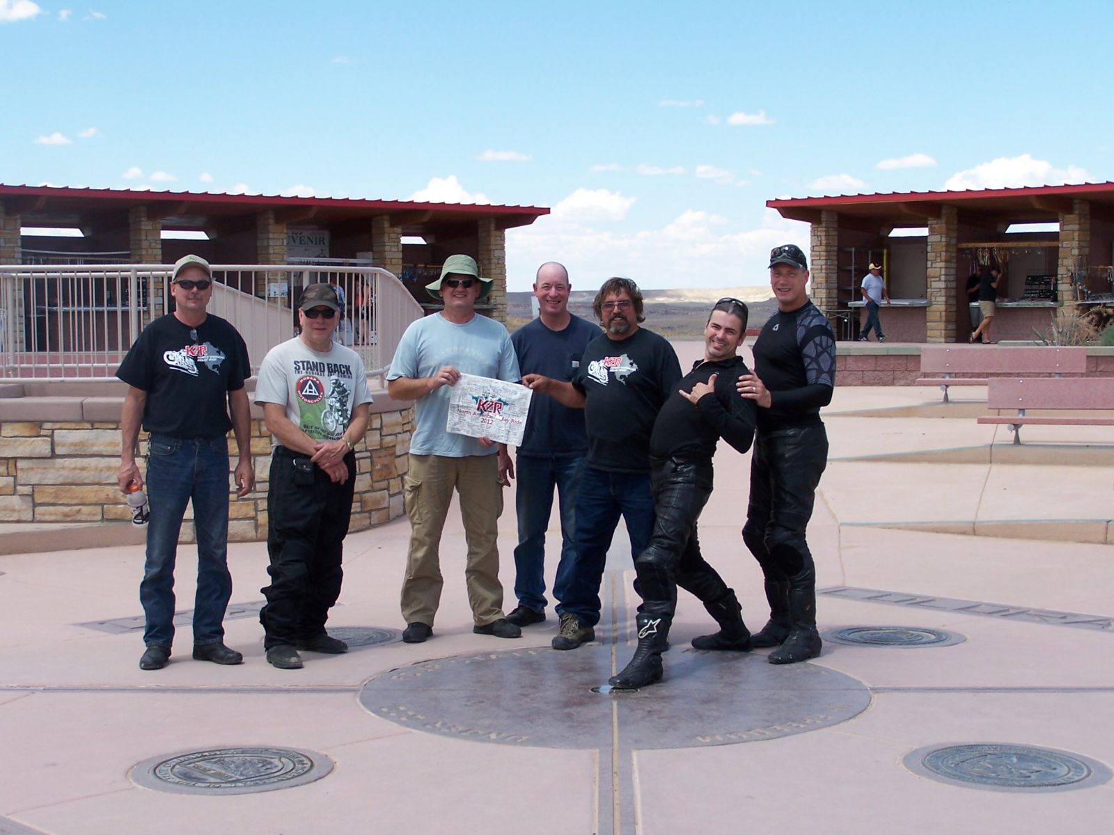 Thanks to everyone who has been involved in the relay, and special thanks to Paul (Baldy) for going those extra miles to ride Solo from Bishop CA to 4 Corners so we could complete the Lower 48 States. He is the only other rider to make the trek by motorcycle to the Rally in 4 corners, besides my friend Dave and I. Paul rode solo on that Trick KZ of his through some really heavy down pours to make it to the rally. Without his effort, the Flag would have been either stuck in CA or one of us would have had to ride to get it to have it at the Rally.