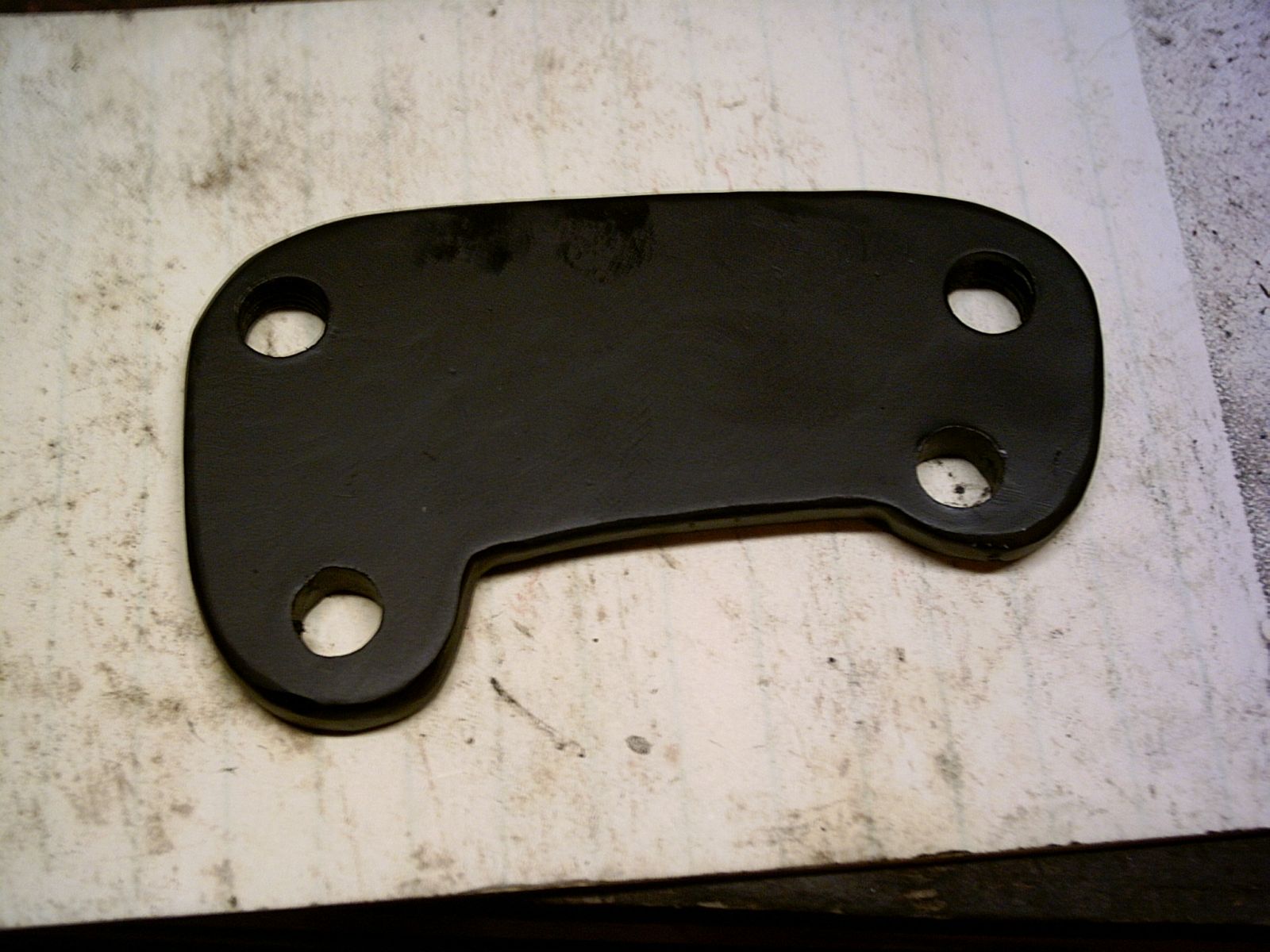 Received a box of Goodies from KZ_RAGE, Installed the Bar risers right away. Looking at the foot Peg Lowing brackets and determining if I like that position. I already have an issue with hitting the lower fairing when I shift, My toe hits it. So I may trim the plastic fairing, then put on the Peg lowering brackets. Then my Feebay Tokico front Calipers showed up. First I cut out a template, then the Steel Plate, for the mounting brackets. Got the bolt spacing and correct Pad contact area worked out, then did the drilling and Tapping to mount them. Looks good, just need the warmer weather to get them painted. Supposed to be warmer Tomorrow. Also didn't want to order Pads for them till I got them Mounted. So now I have to do that. Then Z1 has shipped a few trim pieces I needed and could not find at the wreckers. Along with some Bits for the KZ K2. Purchased a 18-LA Wet battery from them also. This should work fine, already mounted up a good 12v power point into the fairing, So Battery Maintainer/ float charger can be quickly plugged in. Same as on the KZ K2 with the Vetter.