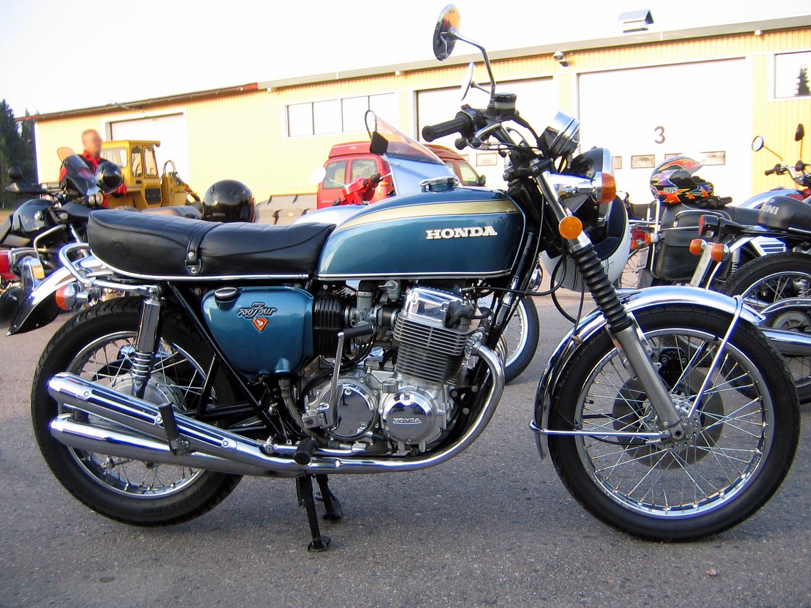 It's a CB750 I believe. Those pipes on the CB500/550 Patton mentions? I think those uglys must have been European or something. No CB I ever saw had those on them. I'm no CB expert though, but to me they were always fantastic, at least the larger ones. CB360 and the like need not present themselves ever again.