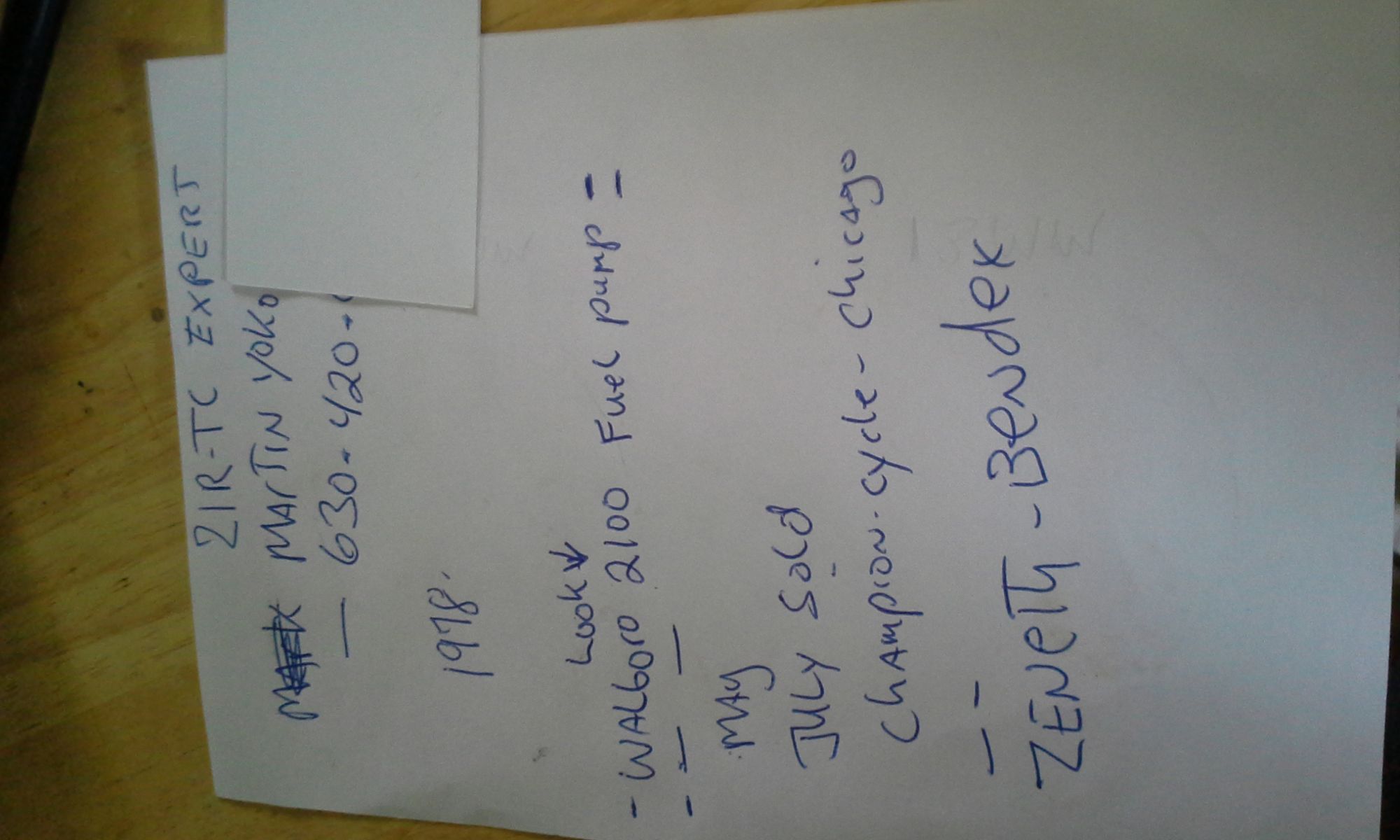 Upper right is Martin's Name and phone number and some notes mainly that the Z1r tc was delivered to ATP in May and sold at Champion Cycle -Chicago in July