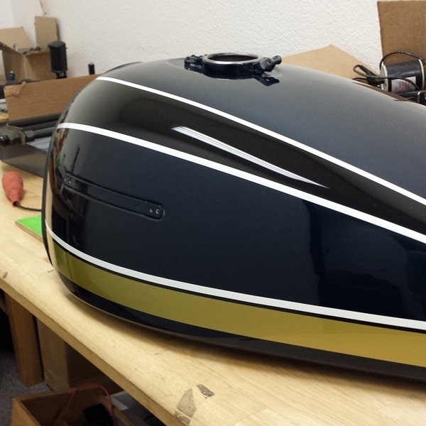 From what I've read I may have waited too long to clear coat the tank. I might have to run into town and get another can of base coat. That being the case I can fix the small blemishes before I do it.