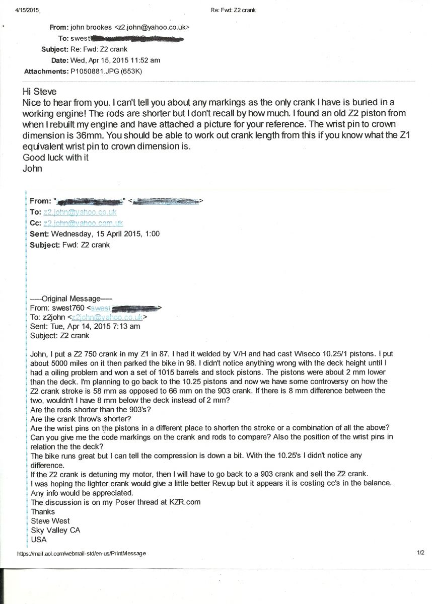 In any event, it appears I detuned my motor by using this crank. If this is true, then I will have to get a 903 crank to get back to where I started. That just means there will be a Z2 crank for sale at some point. Meanwhile the bike runs like a scalded cat and if I get my new piston, it will even be better. Like I said, no hurry. :whistle: