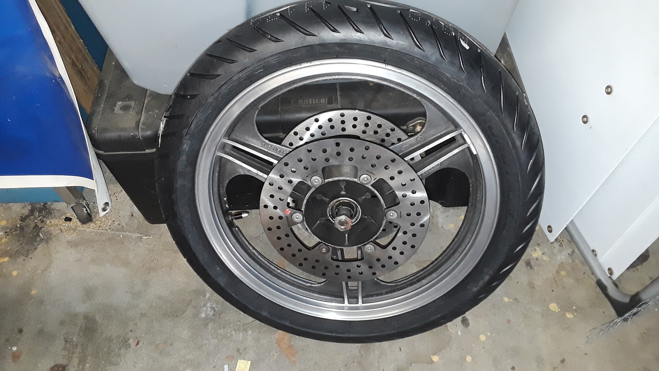 Fellas, I just wrapped up the upgrade on my Suzuki, well, almost... and so the lift was clear for the first time in a long time. My wife has always ridden & owned her own motorcycles & her big GPz is next up on the lift. Plans include a Suzuki aluminum GS1100 swingarm conversion, fresh brakes & maybe a fork swap as well... we'll see how it goes & what SHE wants!We bought this bike 5-6 years ago, put a new air filter in it, changed the oil & rode it on the KZR flag relay. Only now (Oct 2020) are we putting close eyes on it. The REAR tire is a 110-90-18! Are you serious? The FRONT tire on my Suzuki is a 110!So the entire front end has been removed & the front brakes disassembled... What a mess. The fronts were horrible! Z1 to the rescue! pads & stainless lines in the basket.As the dis-assembly continues, I find more & more really ugly stuff. Sunday morning, after feeling the horrid condition of the steering stem bearings, it was removed along with the balance of all other components on the front of the bike.Whilst “going through” the running gear I sourced a set of GPZ750 three spoke wheels (keeping it in the family) which have been treated to new boots and rotors. To top things off it now has a radial MC and a pair of adjustable levers. A significant upgrade to the intake was added in the form of RS34 pumpers with K&N’s, aided by a refurbed Kerker pipe.Slimming down the instruments has completely changed the riders view in the cockpit. Lot’s of subtle mods make this a truly unique GPZ.Unfortunately she has now moved on to pastures new. (the bike, not Mrs Slayer